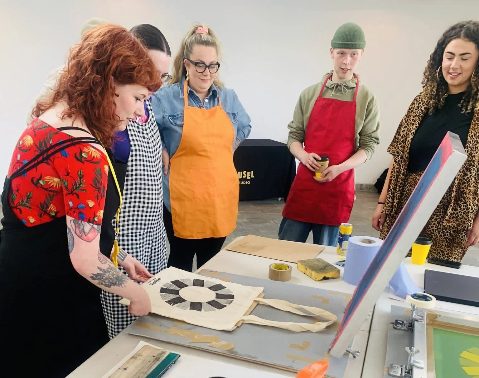 Screenprinting onto tote bags for Urban Futures, Sheffield City Council, Yorkshire Artspace. Photo credit Joe Horner